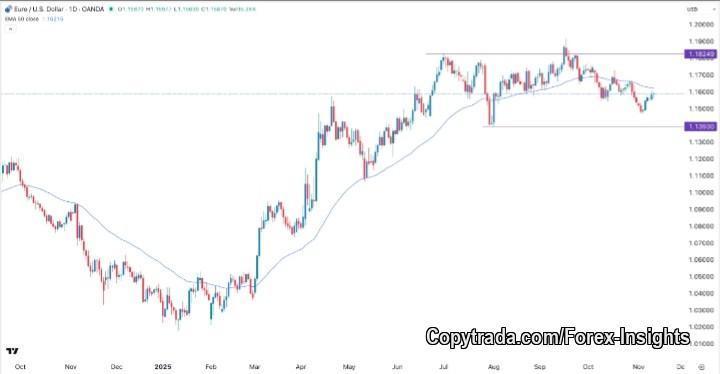 -- Technical charts show EUR/USD is somewhat erratic, trading around its 50-day moving average and at risk of pulling back unless it breaks above about 1.17 (https://www.dailyforex.com/forex-technical-analysis/2025/11/eurusd-forecast-14-november-2025/237013).